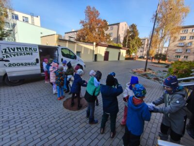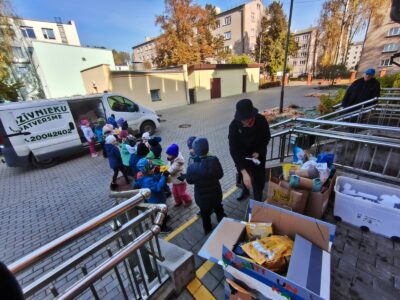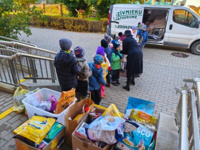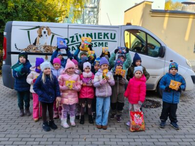 Oktobrī jau tradicionāli visas iestādes grupas piedalījās akcijā “Labo darbu nedēļa 2025”, kuras ietvaros tika savākti ziedojumi Daugavpils dzīvnieku patversmei. Saziedoja gan barību suņiem un kaķiem, gan dažādus uzturēšanai nepieciešamos materiālus. Liels paldies visiem vecākiem, kuri piedalījās akcijā par Jūsu atsaucību un dāsnumu bez mājām palikušajiem četrkājainajiem cilvēka draugiem. Kad akcija noslēdzās, iestādes vecākie un stiprākie audzēkņi no 3.grupas savāktos ziedojumus sakrāva dzīvnieku patversmes mašīnā. Darbs ritēja raiti, jo tika noorganizēta dzīvā ķēde pa kuru viens otram padeva saziedoto. Tā mēs kopā esam padarījuši tiešām labu darbu. https://labodarbunedela.palidzesim.lv/paveikto-darbu-arhivs LIELS PALDIES VISIEM!