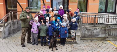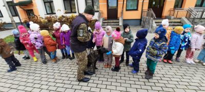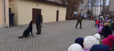05.11.2025 iestādes pagalmā pulcējās 3 līdz 7 gadus veci bērni, jo ciemos gaidīja Latvijas robežsardzes Daugavpils pārvaldes robežsargus kinologus un minēja kādas krāsas mašīna atvedīs sunīšus. Kad atbrauca ciemiņi, bērni viņus sagaidīja ar satraukumu un jautrām čalām. Robežsargi kinologi bija ieradušies jaunajos formas tērpos, kā paši uzsvēra. Audzēkņus iepazīstināja ar atbraukušajiem kinologiem un viņu pāriniekiem dienesta suņiem. Katrs no viņiem demonstrēja savas prasmes un iemaņas. Bērniem bija iespēja noglaudīt suni, kurš apmācīts kanisterapijai, kā arī pacienāt viņu ar gardumu. Paraugdemonstrējumi bērniem raisīja daudz pozitīvu emociju.